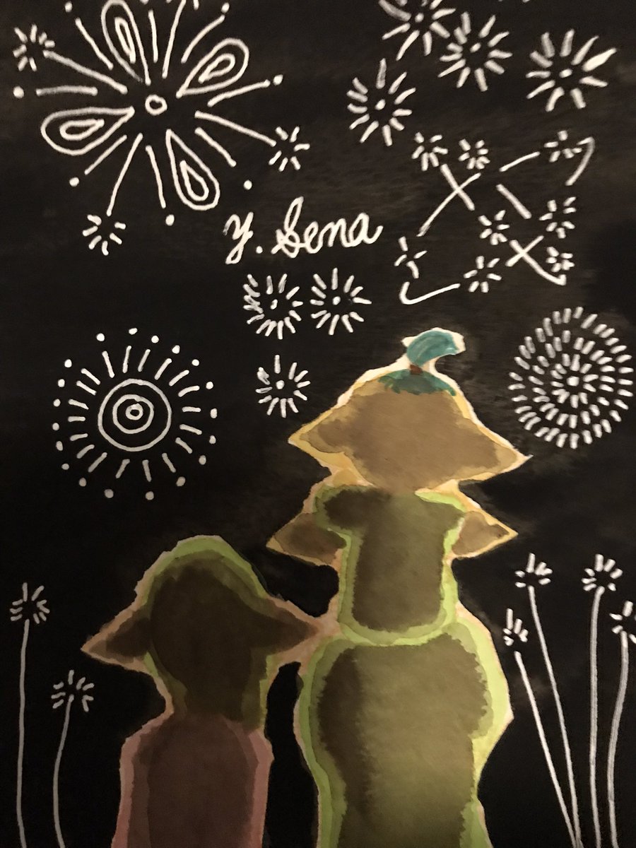 1 5 「リオンと花火」(葉書) #アクリル絵の具 #水彩画 #イラスト 22/08/10 18:56