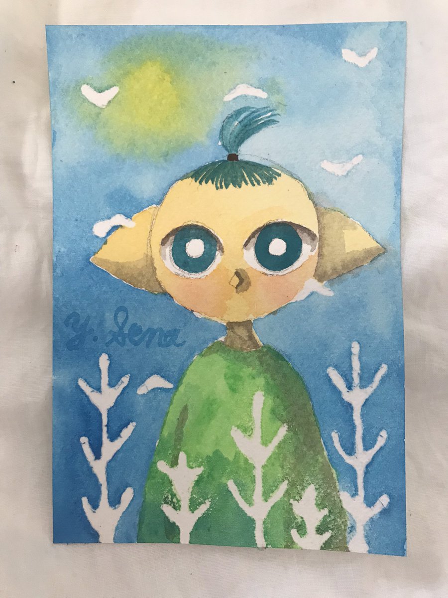 「リオンと水の音」(葉書) #アクリル絵の具 #水彩画 #イラスト #art