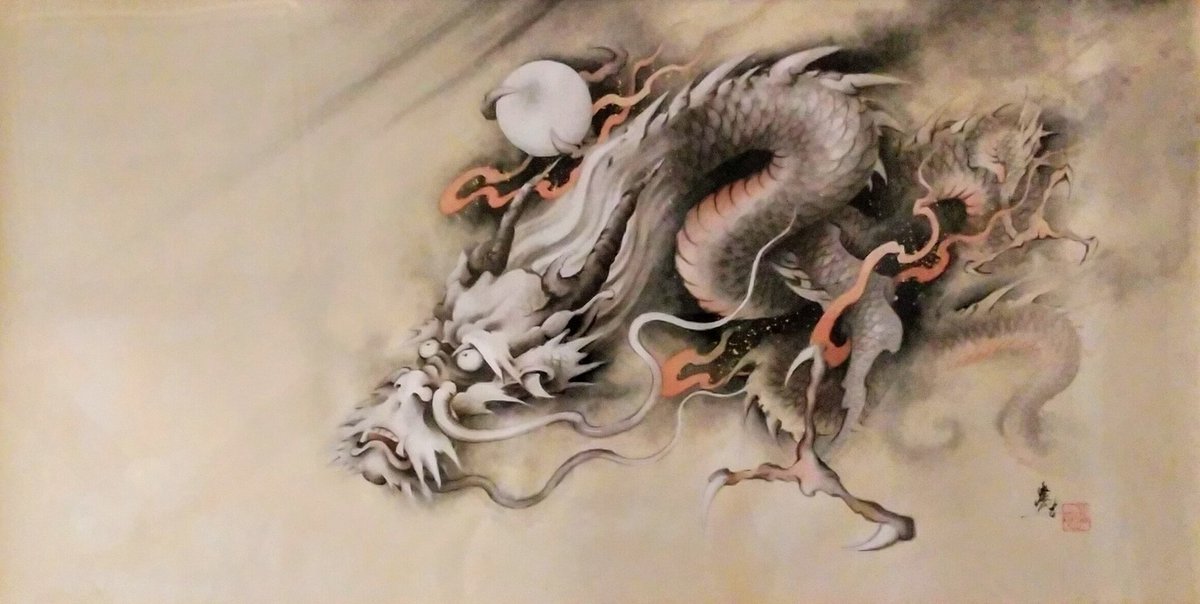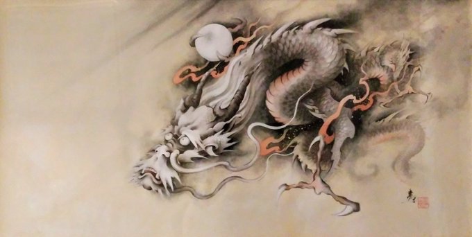 逆鱗 (紙本着色30×79/cm) #みんなで楽しむTwitter展覧会 #みんなのSNSなんでも展示会3 #龍神様の絵 #龍神 #龍 #逆鱗 #水墨画 #日本画