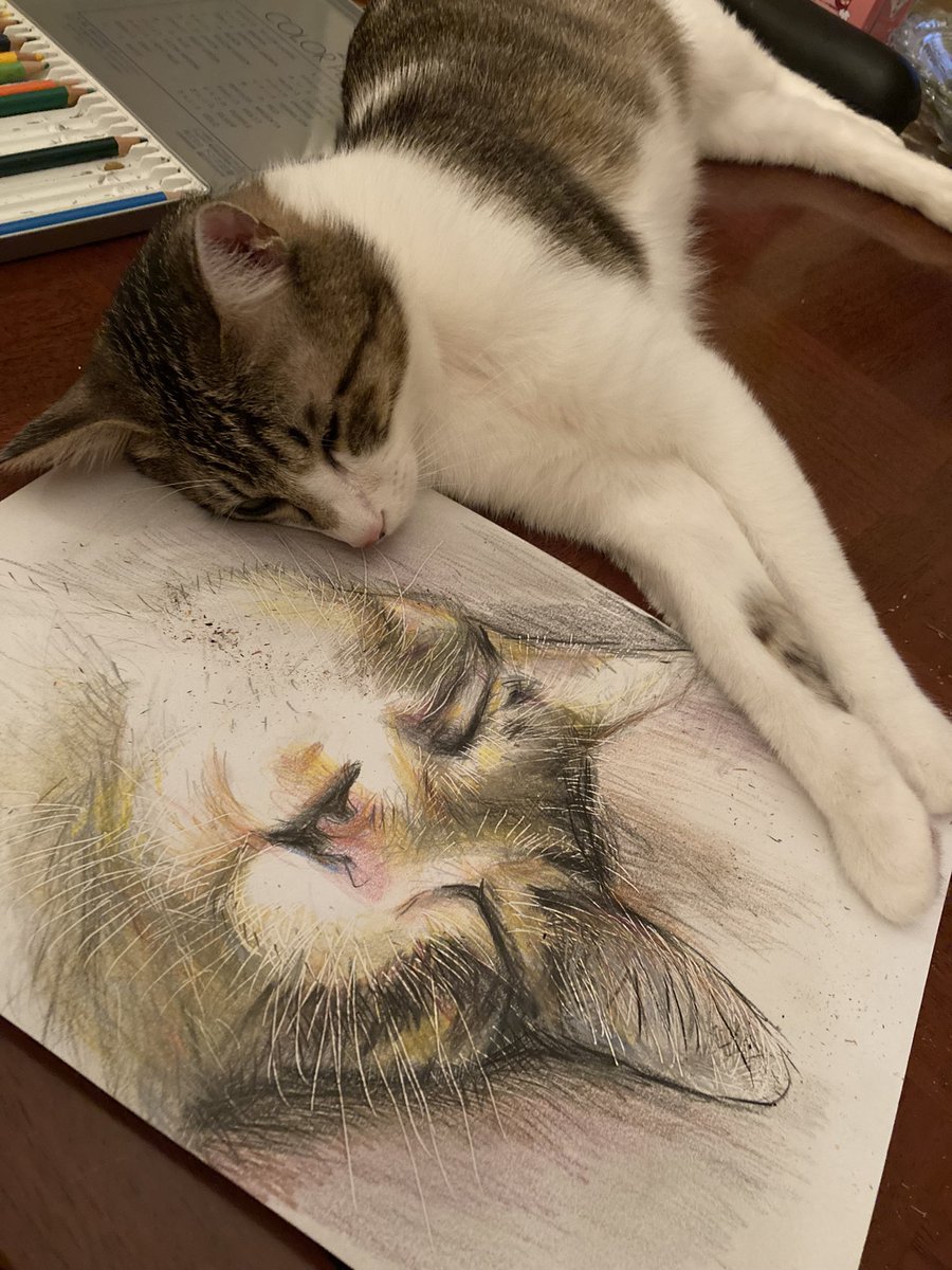 😾を描くシリーズ 猫の横でひたすら描く。 #色鉛筆 #猫 #絵画 #猫のいる暮らし #猫のいる幸せ #猫好きな人と繋がりたい