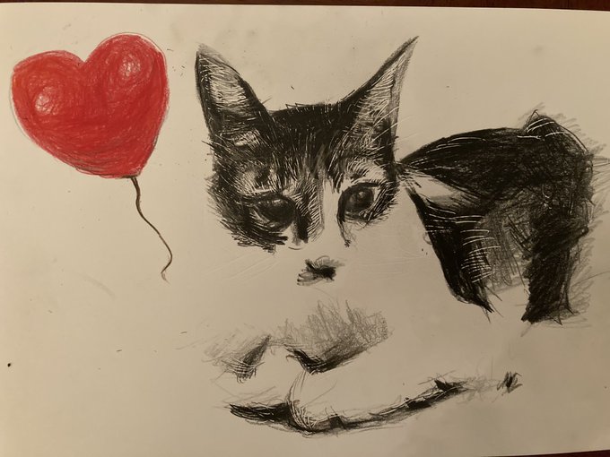 すぐ影響を受ける私。 バンクシー風うちの猫 #バンクシー #banksy #猫 #色鉛筆
