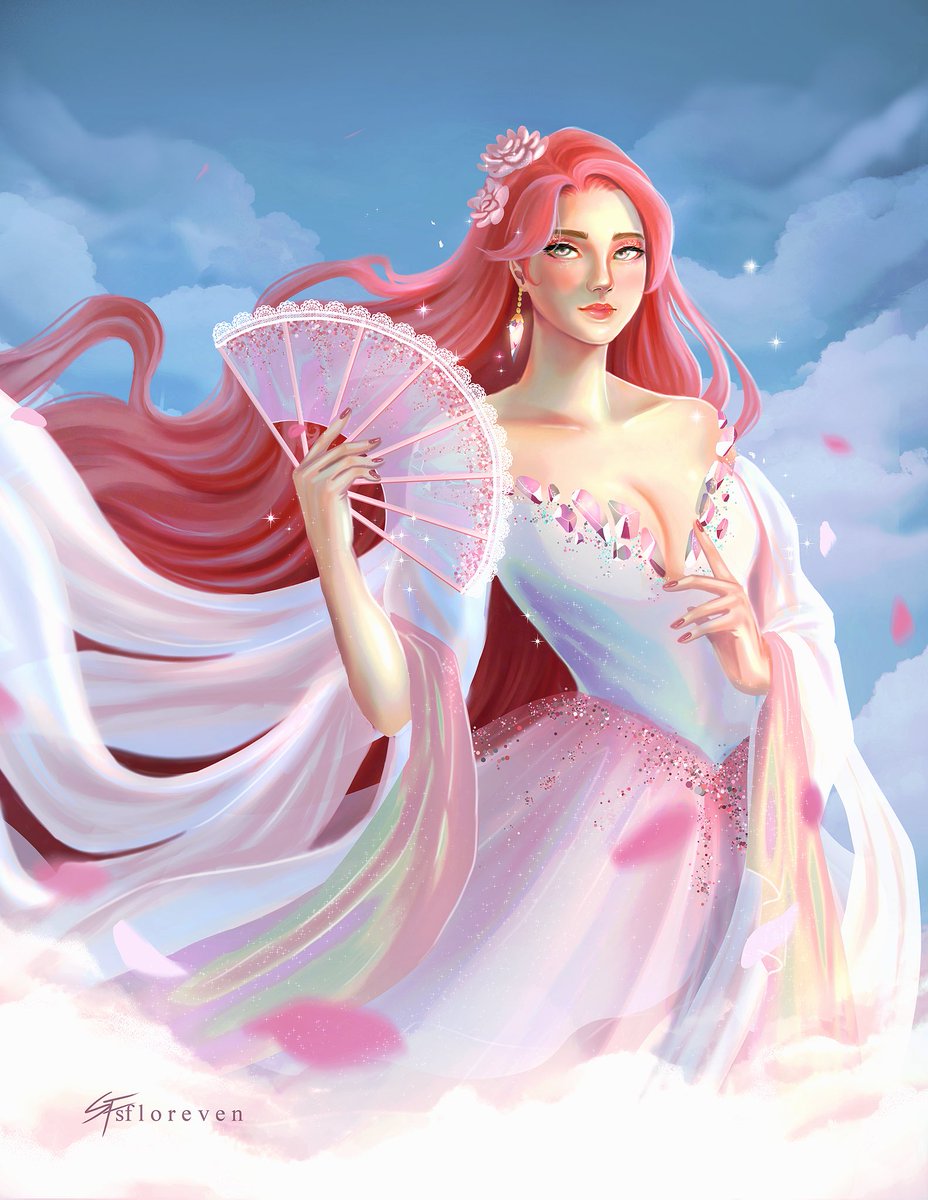 Pink dress & fluffy clouds ☁️💕 It’s been a while since I drew personal art. Any thoughts?☺️💖 #artph #artistontwittter