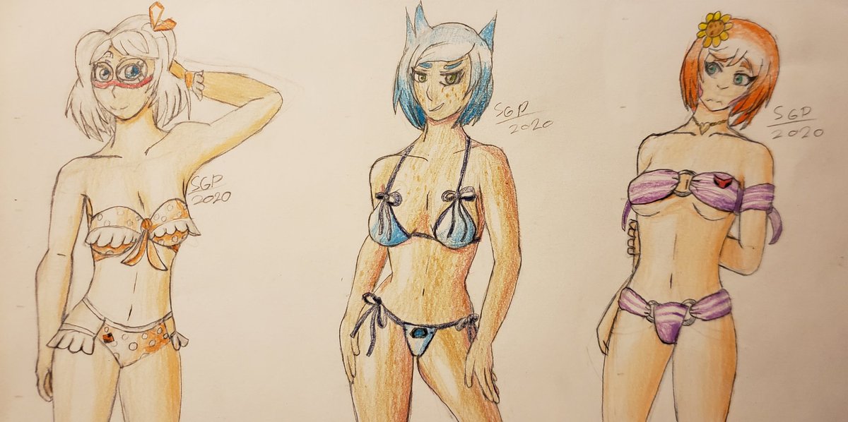 For #cutiesaturday, Here's all of the Striker Angels in their swimsuits! Messy with the cute bikini, Nina in a sexy one, and Elizabeth in a fancy one! Would you take them to the beach?