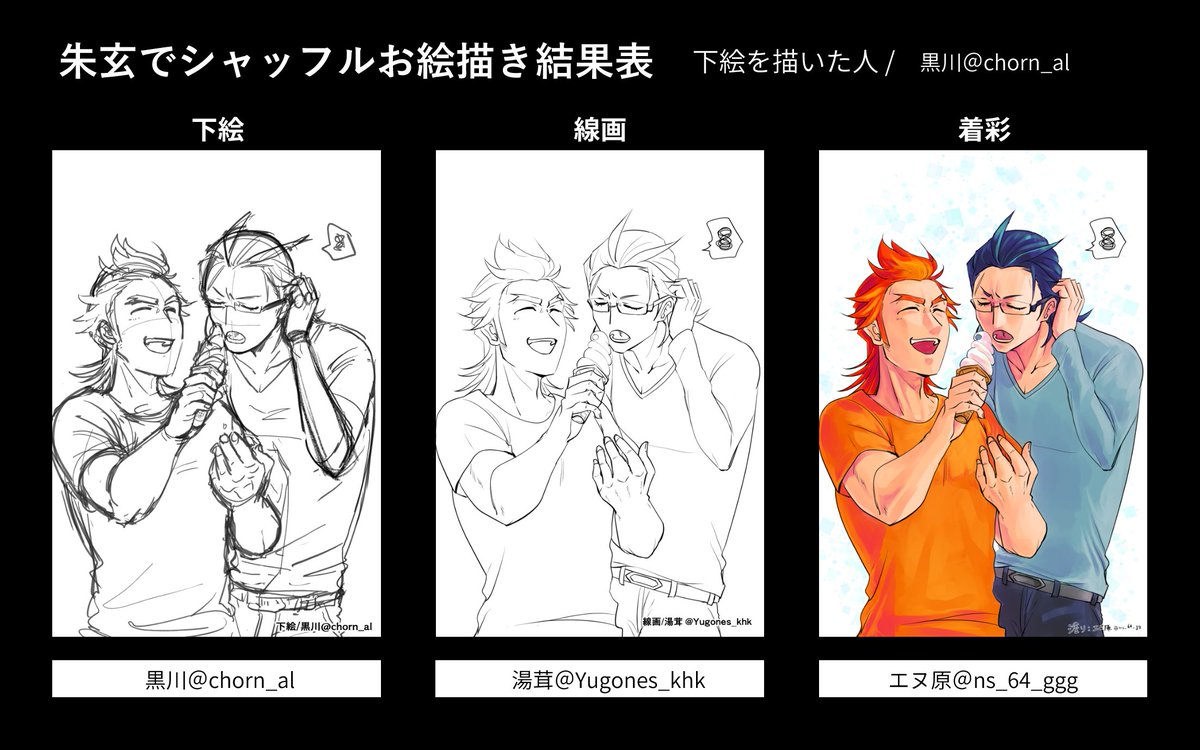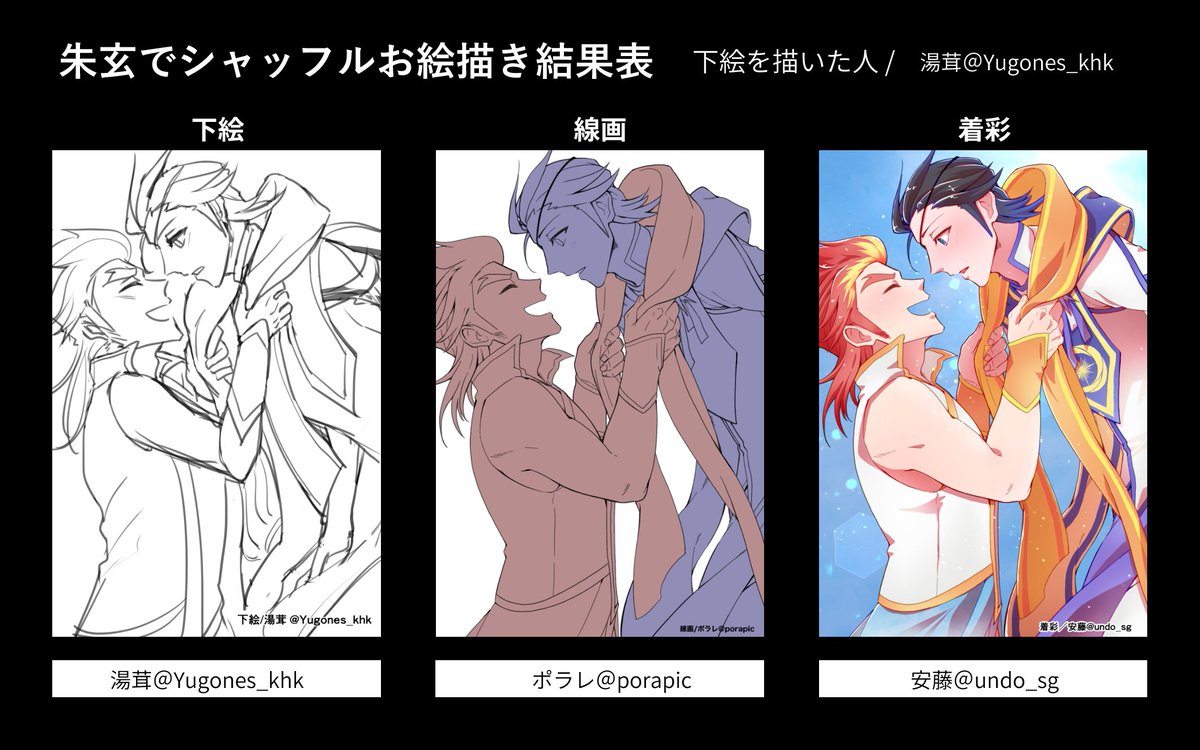 #朱玄でシャッフルお絵描き大会 結果発表です! 01 下絵:エヌ原( @ns_64_ggg ) 線画:やまだ( @pic_yamadaaan ) 着彩:西( @nishi_sdm )