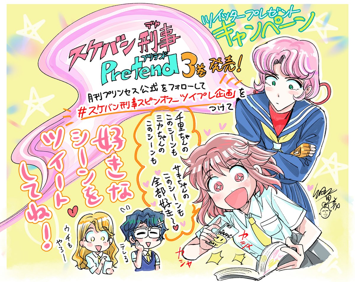 【宣伝】 「スケバン刑事Pretend(プリテンド)🪀」3巻発売中‼️ \ツイッター🎁キャンペーン実施中/ ①公式をフォロー(@gekkan_Princess) ②#スケバン刑事スピンオフ_ツイプレ企画 のタグをつけて、感想と好きなシーンの写真かスクショ撮って画像付きツイートで応募完了 よろしくお願いします☺️