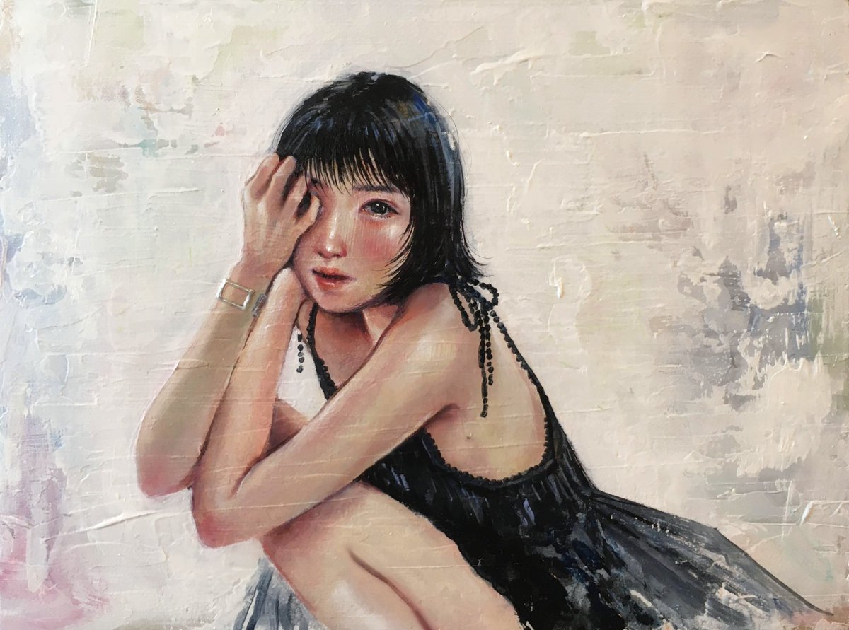 お久しぶりです。 drawing oil on panel. 2022 手を動かしながら、今描きたいものを考えています🌝 #イラスト #illustration #drawing #artwork #art #絵 #油絵 #oilpainting #oil #beautiful #asia #japan #shinri