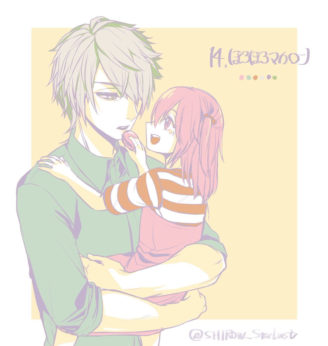 #リプをもらった番号の色を使って絵を描く あきづ様【@akizu__19】より 14.ほろほろマカロン×シン早希(おにロリ) マカロンを食わせるしかなかった
