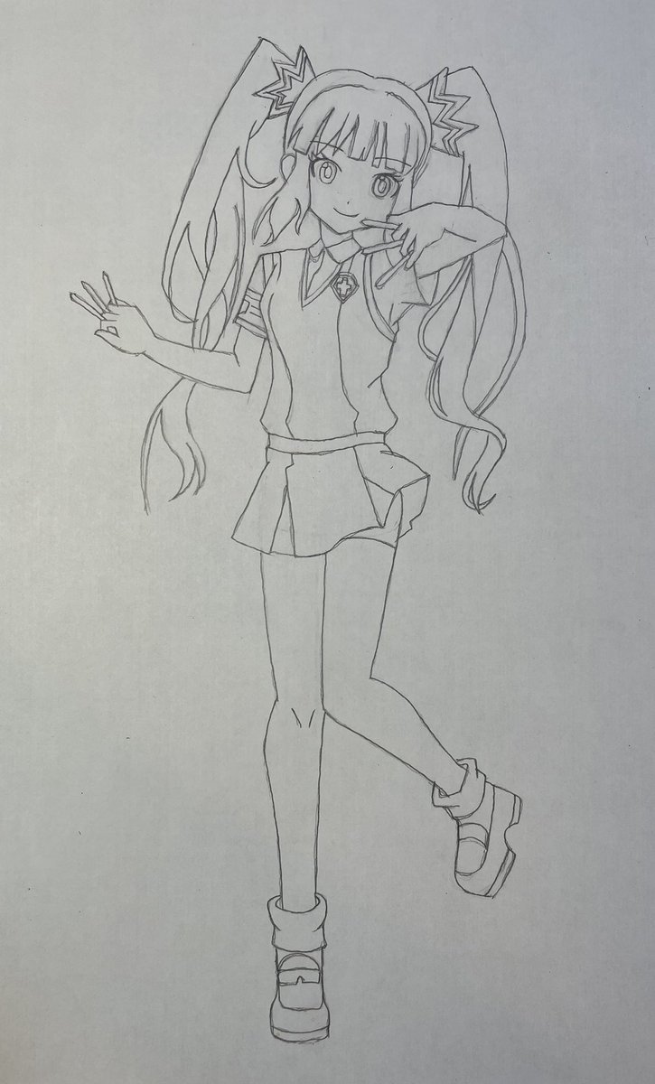 女子高生を描きました‼️ 靴が紙からはみ出ちゃった。 全体を把握する能力の欠如。 #女子高生 #JK #落書き