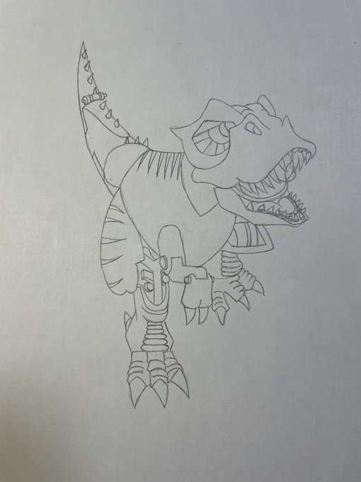 メダロットSのティラメガトロン(メダチェンジ)を描きました‼️ ロボットじゃなくてただの恐竜じゃん‼️まぁ恐竜を描くのは初めてだったので面白かった‼️ #メダロット #メダロットS #ティラメガトロン #落書き