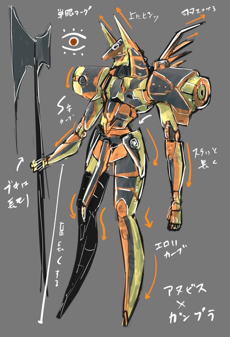 作ろうとしてる機体ー! アヌビス(ZOE)っぽい機体にしたくなりました。曲線をエロく!。単眼要素も入れたい。 ガンプラバトル(市街戦)には適してないかも。だけど楽しんでます。\(//∇//)\ #ガンプラ #イラスト #P9ガンプラバトル #ガンプラ好きと繋がりたい #絵 #illustration #illust