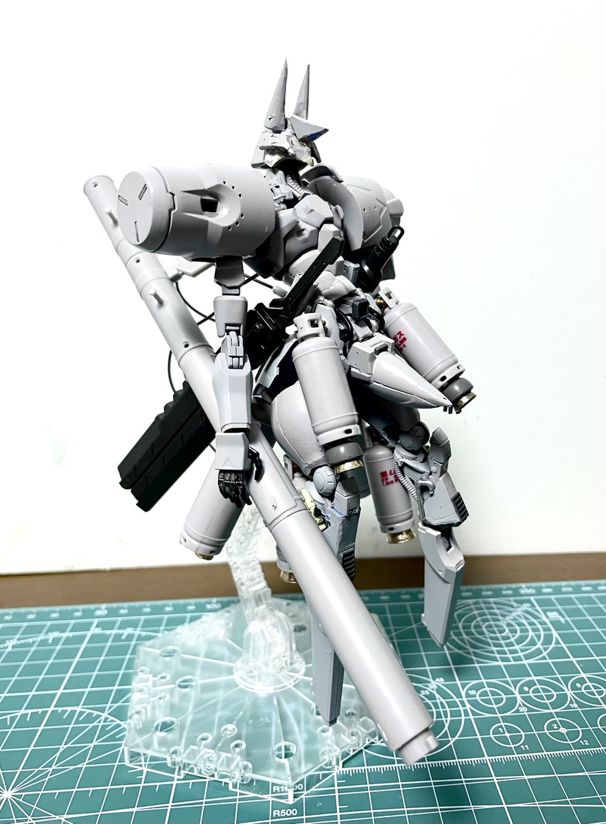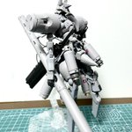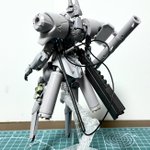 速乾パテ盛って、マッシブになるEz-8(旧MGのGP01を改造中)、パテに模様を付けてディテールアップ、少し豹柄にも見えてきたw 現地改修風に出来たらいいなー\(//∇//)\ #ガンプラ #ガンプラ好きと繋がりたい
