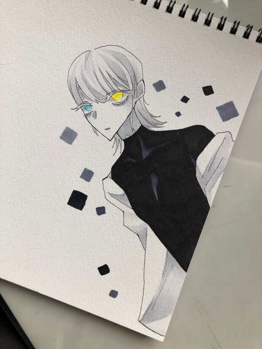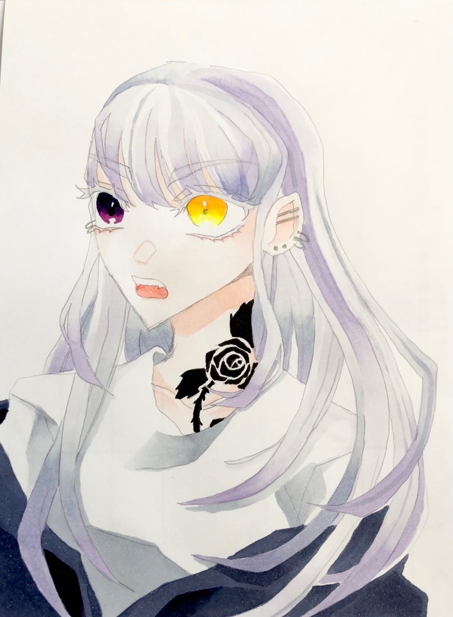 ウルフカットってこれで合ってる? #絵描きさんと繋がりたい #絵柄が好みって人にフォローされたい #中学生絵描きさんと繋がりたい #イラスト #イラスト好きな人と繋がりたい #ウルフカット #オッドアイ