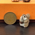 先日のリスの大きさ。 10円玉くらいの子です。 いつものわんこや、ストラップのハリネズミと比べてもこんなに小さい😵 どんぐりも手作り。 …スタッフの手の器用さにビックリですよ🫢 #羊毛フェルト #リス #ハンドメイド #needlefelting #ミニチュア #doll #ハンドメイド好きな方と繋がりたい