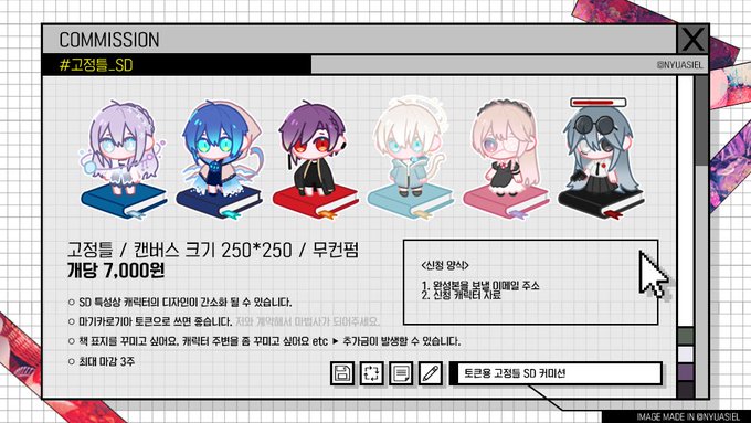 83 8 [COMMISSION] 토큰용 : 고정틀 SD 커미션 nyuasiel.postype.com/post/12180351 편하게 문의 주세요! 22/04/07 22:02