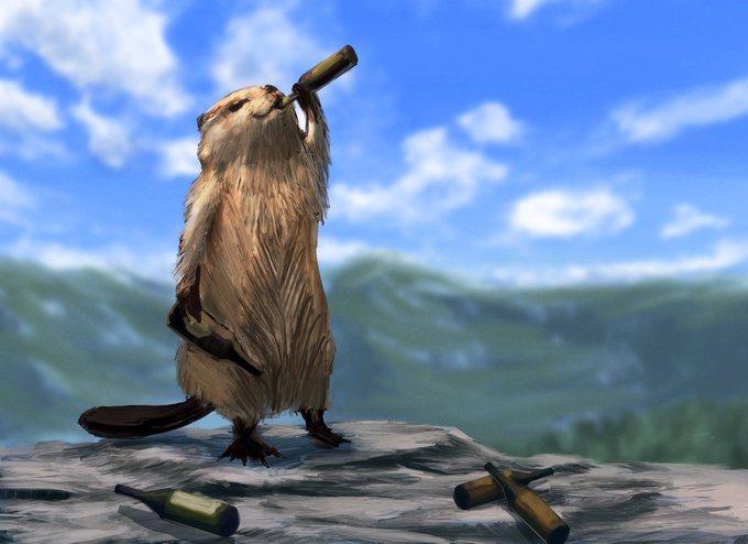 16 169 これは昼間から飲んだくれるビーバー #イラスト #illustraion 23/03/12 22:52
