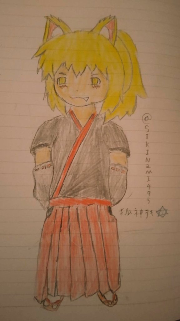 @Lopi_illust_ 参加失礼します 狐神アキの代理の秋田改です 普段はアナログで描いています #狐神稲荷の絵馬 #絵描きさんと繋がりたい