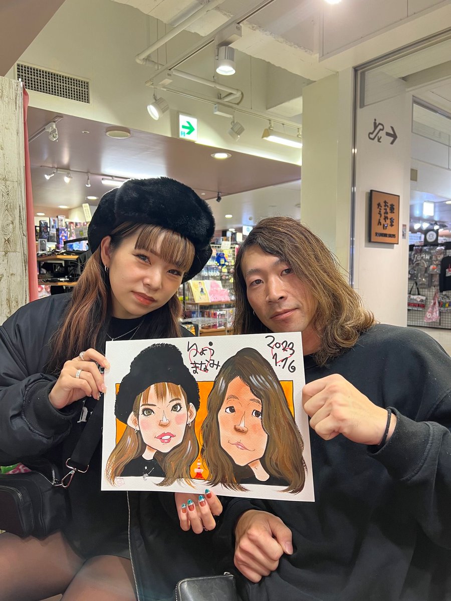 20 81 5月7日14時からは久しぶりに 天神出現っ 新天町マクドナルドの隣の階段を降りた 地下にある魔窟、 似顔絵スタジオフェイスロックで90分 似顔絵描いてるっ 一緒にkunikazu.氏っていう東京から来た凄腕似顔絵師がいるので、 両方に描かれし者に一部に刺さる スペシャルプレゼント用意してみるーー 23/05/06 19:20