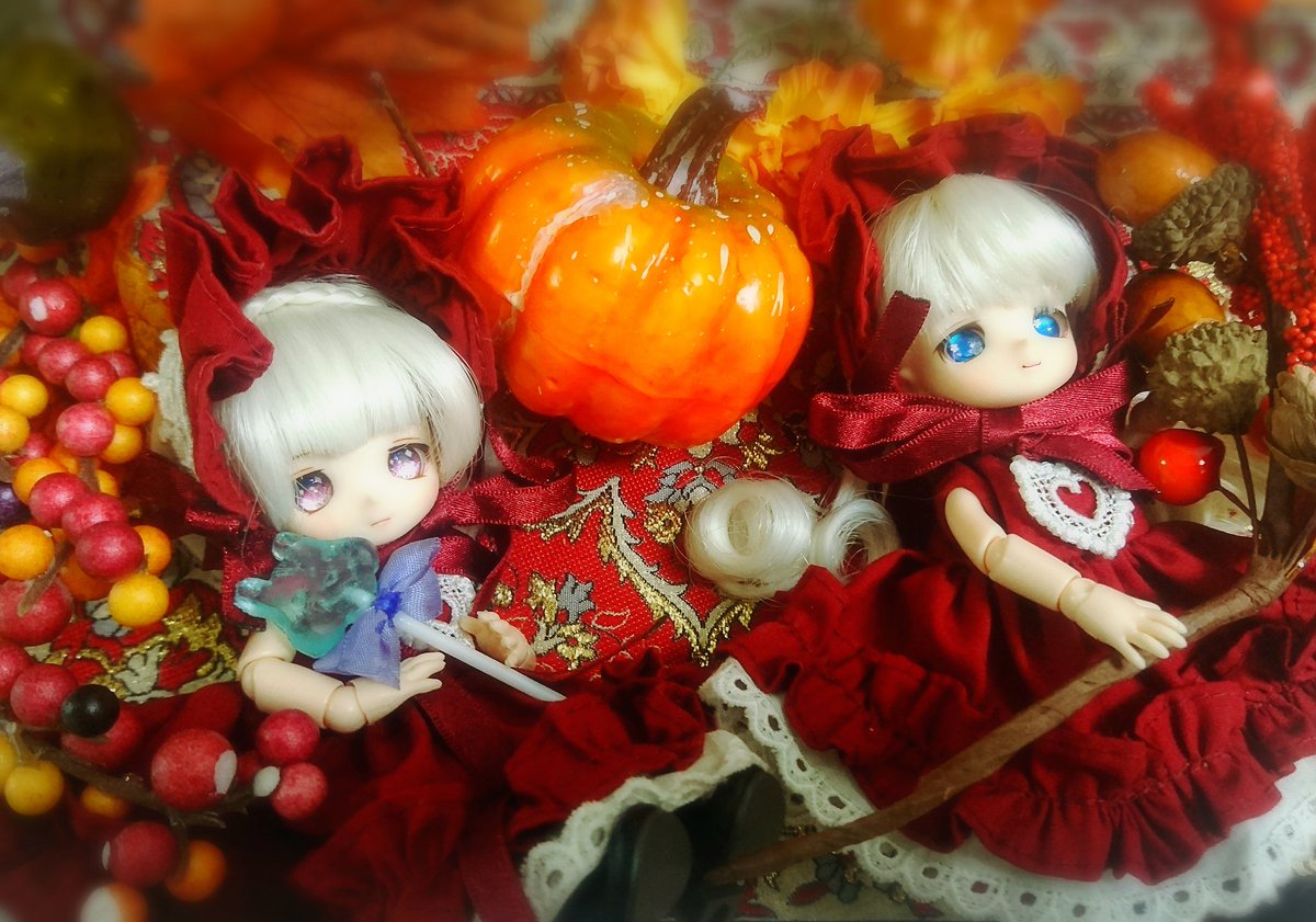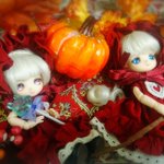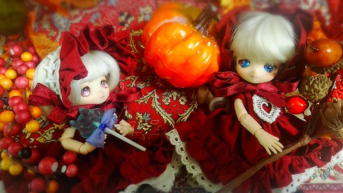 『おはむすです✨』 (おはようございます✨@miriafiuさんの衣装でロズマリ姉妹。また双子服ほしいわ\(*´ω`*)ノ✨ ) #ミニスウィーツドール #あまむす #うちのこかわいい #ローズマリーはいいぞ