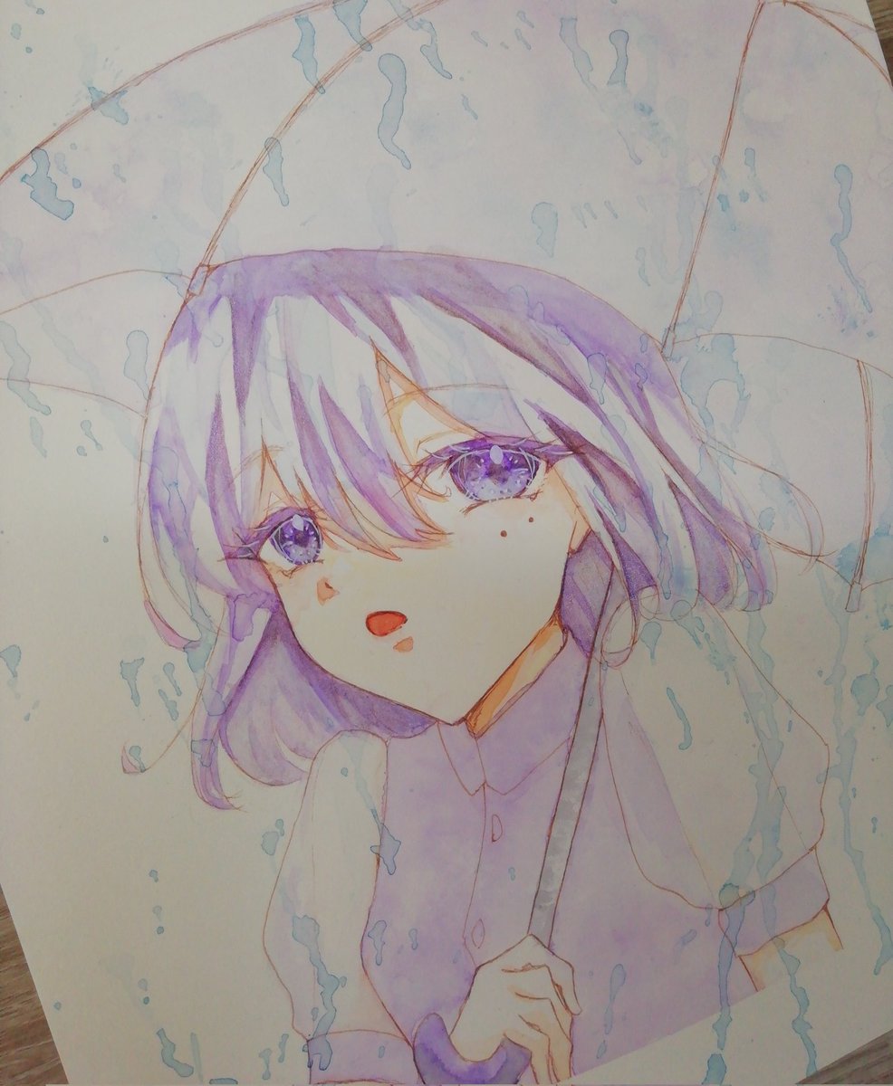水彩 『雨』 結構頑張った! 写真だと色が全然わからないいいいい コメントに色がめっちゃ分かりやすくなったやつ載せときます 久しぶりに女の子描いた~! #イラスト #水彩画 #イラスト好きな人と繋がりたい #透明水彩 #中学生絵描きさんと繋がりたい