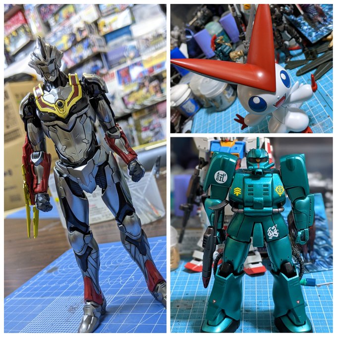 #今月作ったプラモ晒そうぜ 21年5月 ・ザクマリナー ・ビクティニ ・イーヴィルティガ また同時進行のキットが増えてきたのでどうにかしたい。 #ガンプラ #ポケプラ #FigureriseStandard