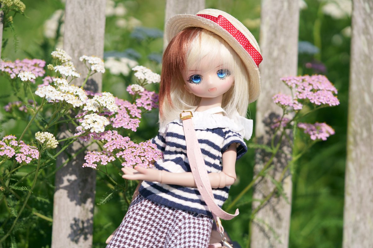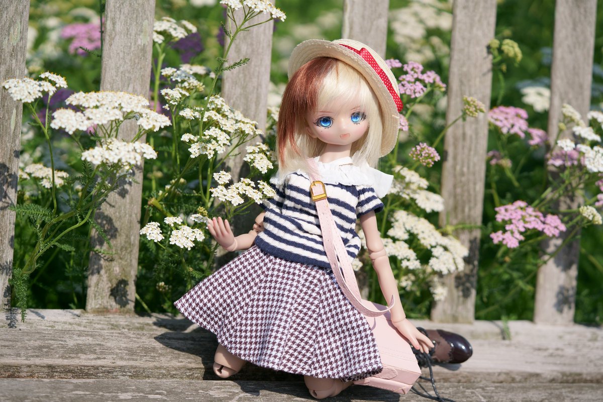 5/28のお題「つかむ」 碧南発電所の麓にあるたんトピアヒーリングガーデンに行ってきたよ! いーい時期に来たねぇいろんな花が咲き誇り!! この花つかめちゃうね し、しょうがないよね?ベンチにまで私綺麗よアピールしてきてる花だしね??ちょっと触らせてね #今夜のドール撮影120分一本勝負