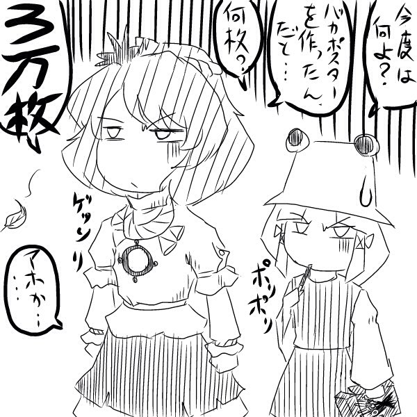 38 57 数年前にのオンバシラの日に描いたヤツでごめんなさい。…早苗さんが作ったポスターという設定。地味に諏訪子様がポッキー食べてる #11月11日はオンバシラの日 16/11/11 22:57