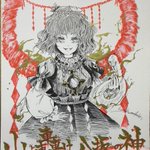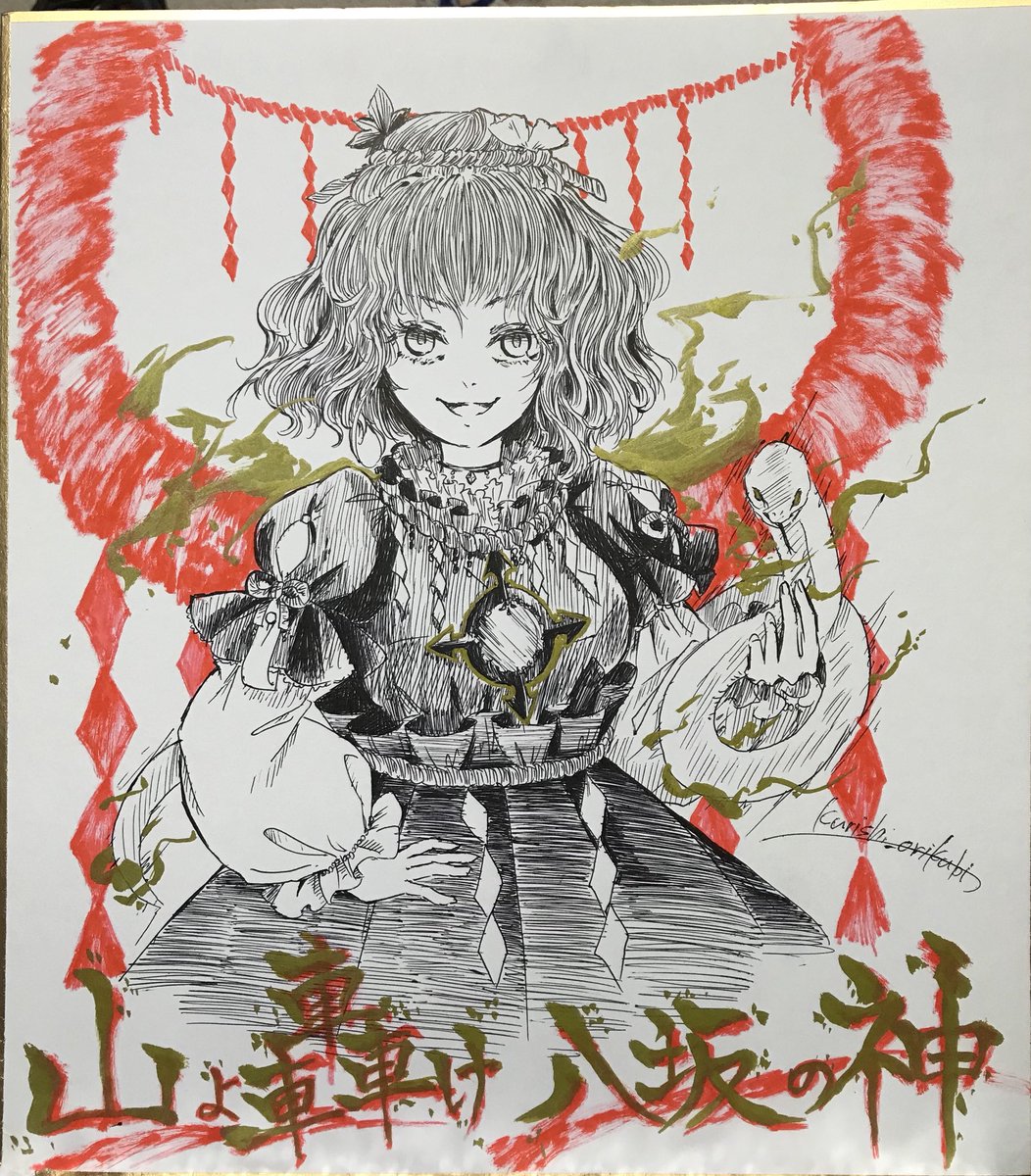 21 29 土下座して九梨詩のアネゴ(@kurishi_orikabi )に描いて頂きましたる神奈子様!一本一本丁寧に繊細に引かれた髪の毛とカゲ、金と朱のカラーで墨絵の様に力強く描かれた背景に、土下座信仰待ったナシで御座います!! 17/10/26 20:18