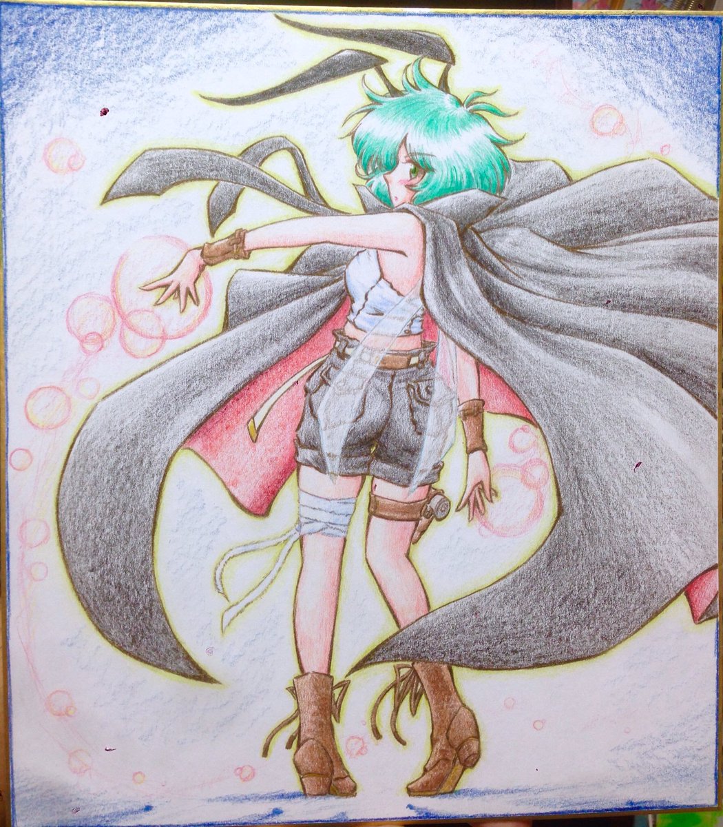 #皆さん線画と塗った後を見せてください リグルさん色紙を色鉛筆で!!