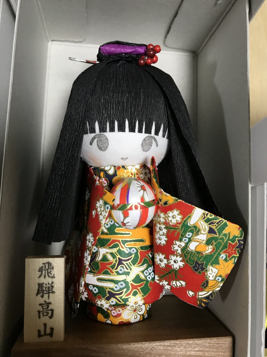 次に、シンプル着物におさげ髪が可愛い「おさげ」、その次が、手に鞠を持ってて、袖が可愛い「てまり」、1番小さくて、版画の傘が可愛い「版画こけし」。ちんまりしたサイズ感に震えます✨