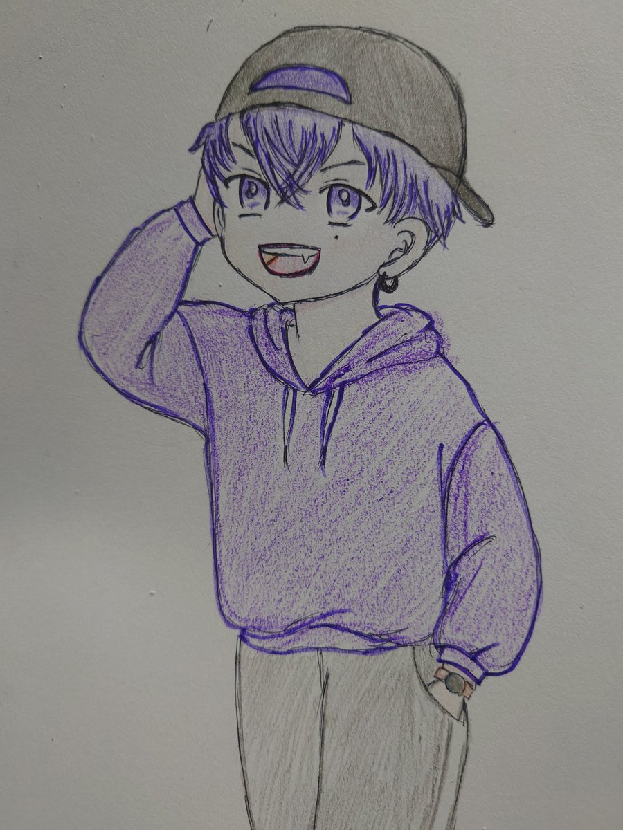 #しまーと 久しぶりお絵かきしてみた💜 色塗り失敗😣なかなかやっぱ上手く描けない💦