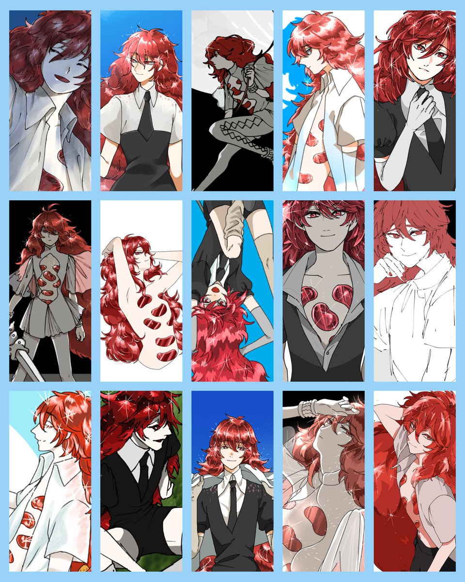 #主催が全部描く誰デザ お題『一色そらが作りそうな長髪美形』 長髪美形が豊作です!!! 主催として描かせていただきました!私のほか、6名の方が参加してくださっています🙌 ツリーにアンケートを連ねるので私がデザインした子を当ててみてください~~!! 結果は24日19時以降発表予定です🫶