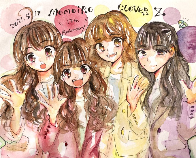 ももいろクローバーZ結成12周年おめでとうございます! 笑顔と絆を胸に、これからも一緒に歩んで生きたいです💖❤️💛💜💎🍀✨ #ももクロ結成12周年 #ももクロ12周年 #momoclo_fanart