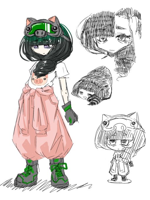 科学班でもサイエンティストというよりメカニックのイメージ。Tシャツはタニコロくんグッズ(過剰在庫) を着ている設定。「たにし」とかときどきで適当なダサTで #ついなちゃんイラコン #タニコロくん