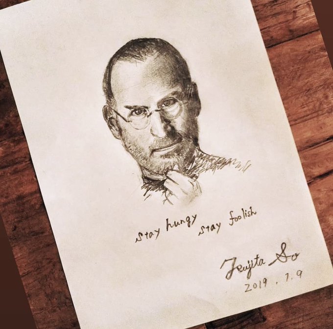 皆さんおはようございます☺️ #スティーブ・ジョブズ を描きました! #イラスト好きな人と繋がりたい #SteveJobs 今日もよろしくお願いします!😆 #絵描きさんと繫がりたい ♻️中心に❤️も無言で巡回します!!!!! カフェモカが染みる…