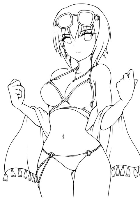 #ほっぺの斜線は可愛い ちょっと探したけど水着絵ばっかりになるわね。