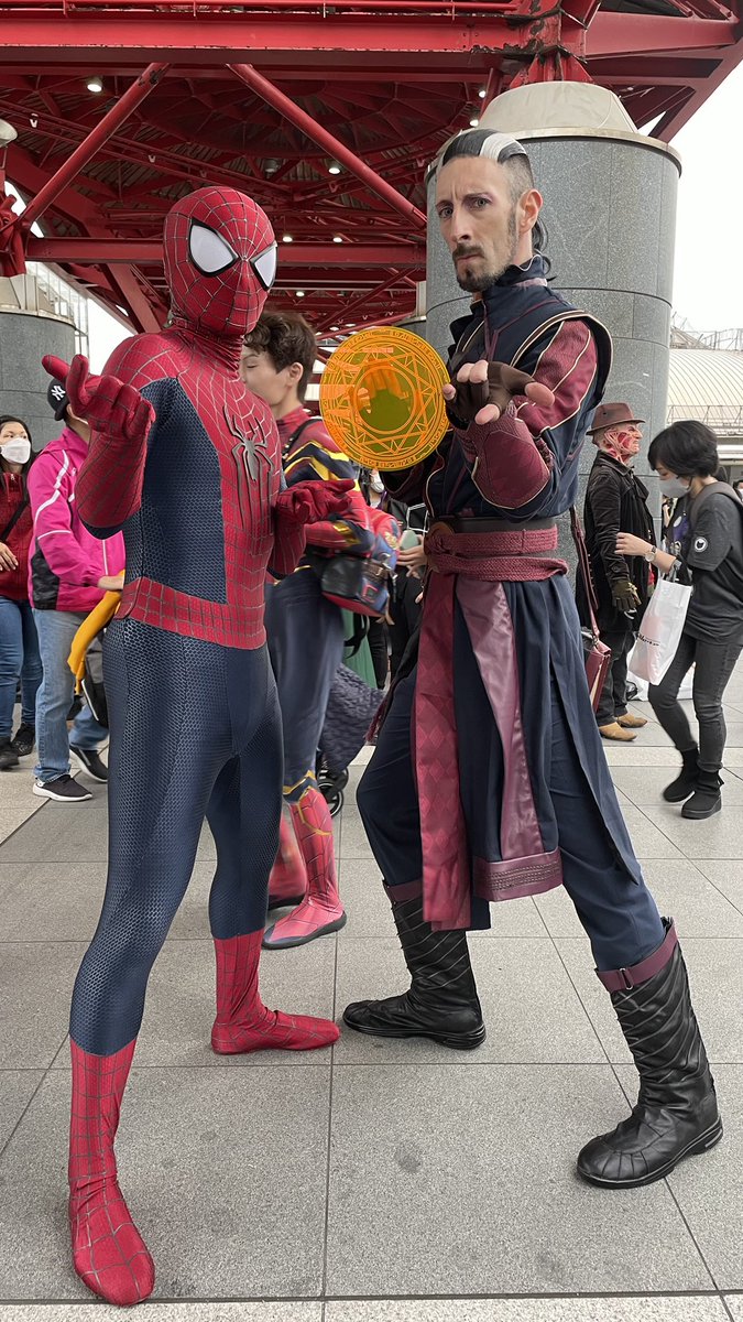 【コミコン2日目】 ディフェンダーストレンジ×アメイジングスパイダーマン マルチバースはなんでもありで最高すぎる!! 念願の!念願のDiscoさん(@fujimaccha4649)と、、、めちゃくちゃ面白い人でした惚れました😭🤟 #東京コミコン2022 #東京コミコンコスプレ #TokyoComicCon #SpiderMan