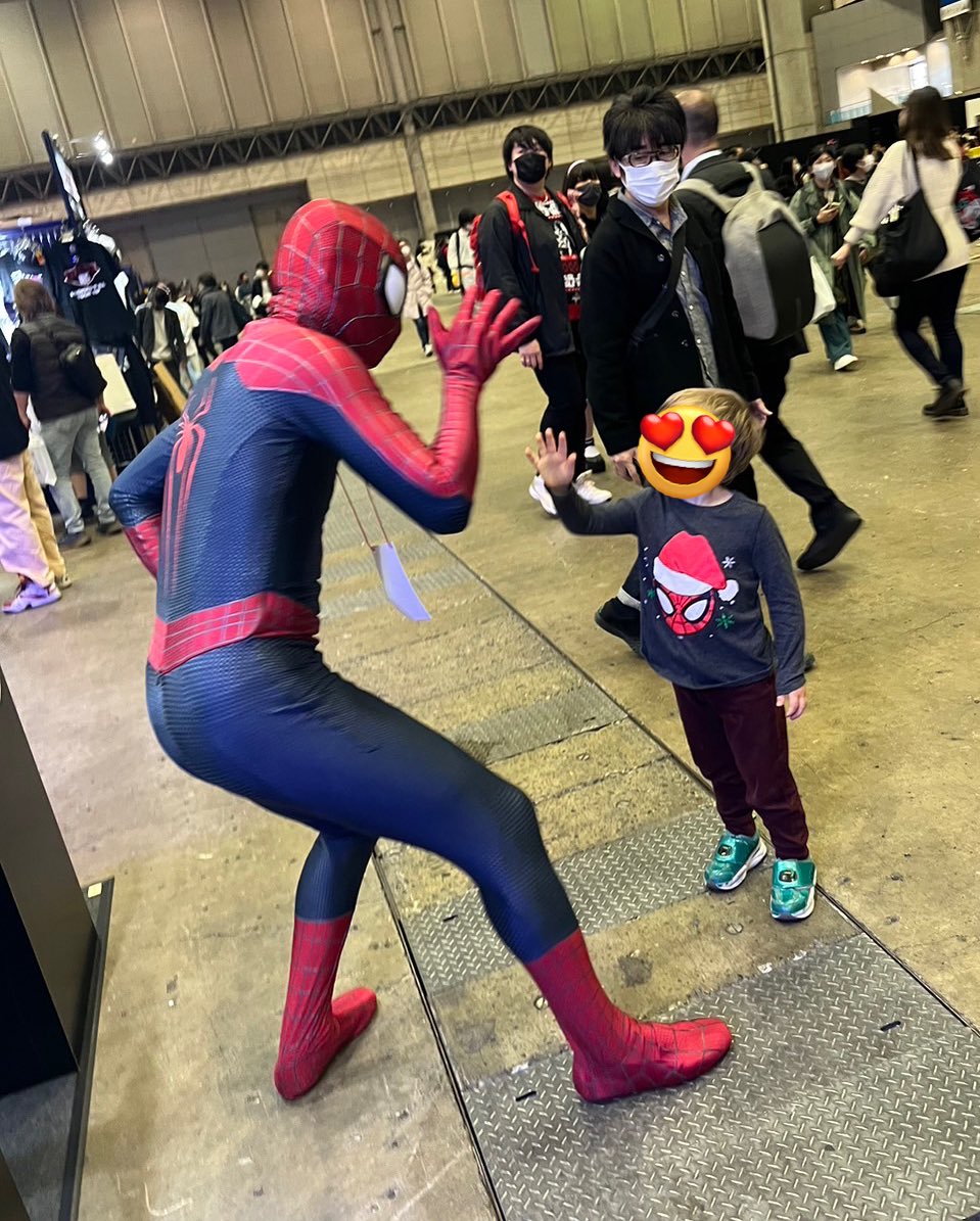 【癒しでしかない】 本当にありがとうスパイダーマン。 こんなに好かれてるあんたはやっぱ最高だぜ😭🤟(ウッディ) #東京コミコン2022 #東京コミコンコスプレ #TokyoComicCon #SpiderMan #スパイダーマン