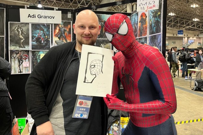 【コミコン2日目】 アディグラノフ(@Adi_Granov)さんのコミッションに当たってしまい、、、🫶🫶🫶 スパイディで受け取りました、、、🫶🫶🫶 最高でした😭🤟🤟🤟 Thank you so much,Mr.Adi Granov!! #東京コミコン2022 #東京コミコンコスプレ #TokyoComicCon #スパイダーマン #SpiderMan #TCC