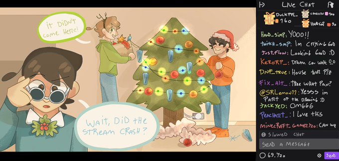 Georgenotfound went live: DECORATING A CHRISTMAS TREE W/SAPNAP AND DREAM! Merry Christmas! :D #sapnapfanart #dreamfanart #georgenotfoundfanart #dreamteamfanart