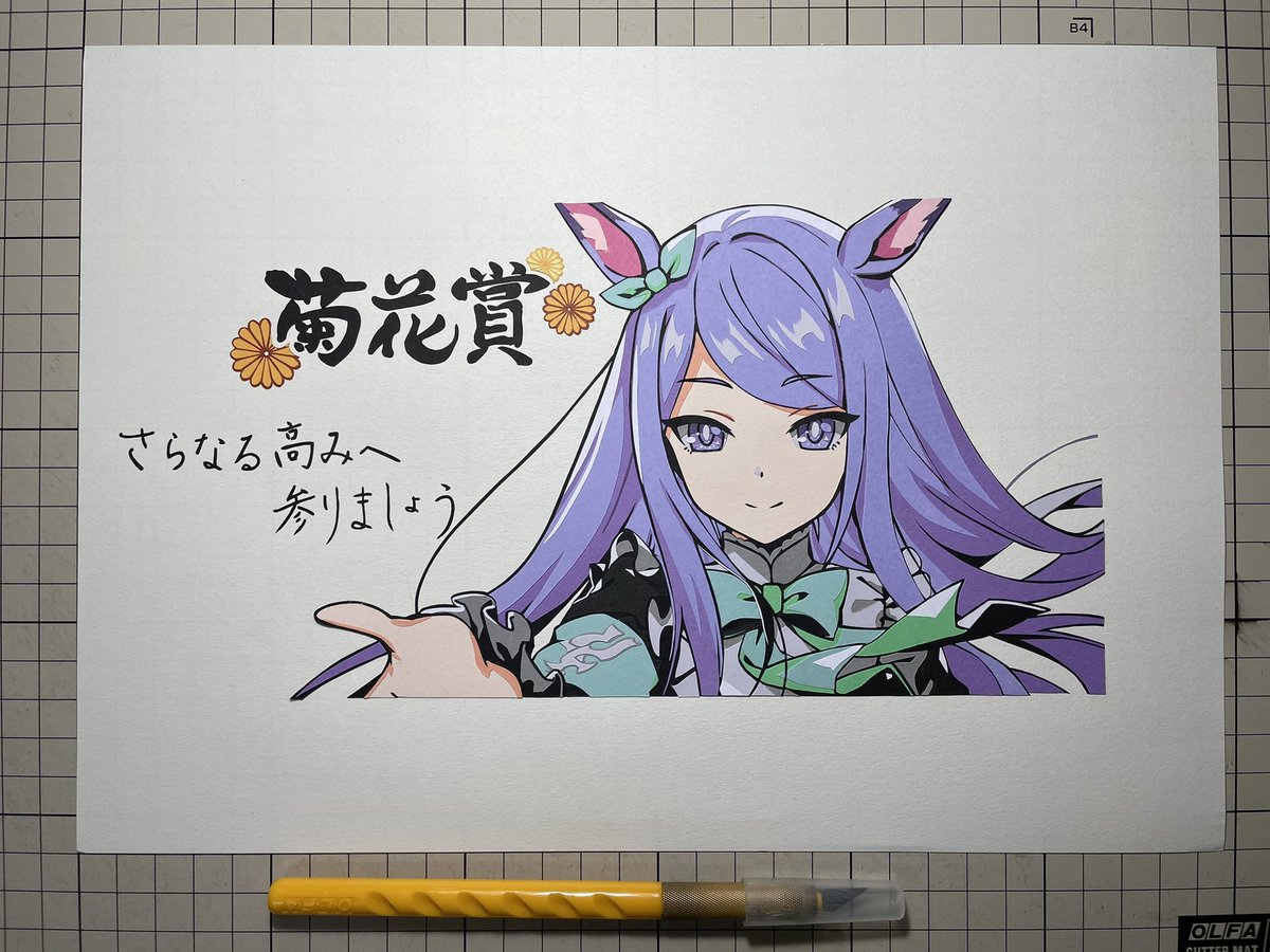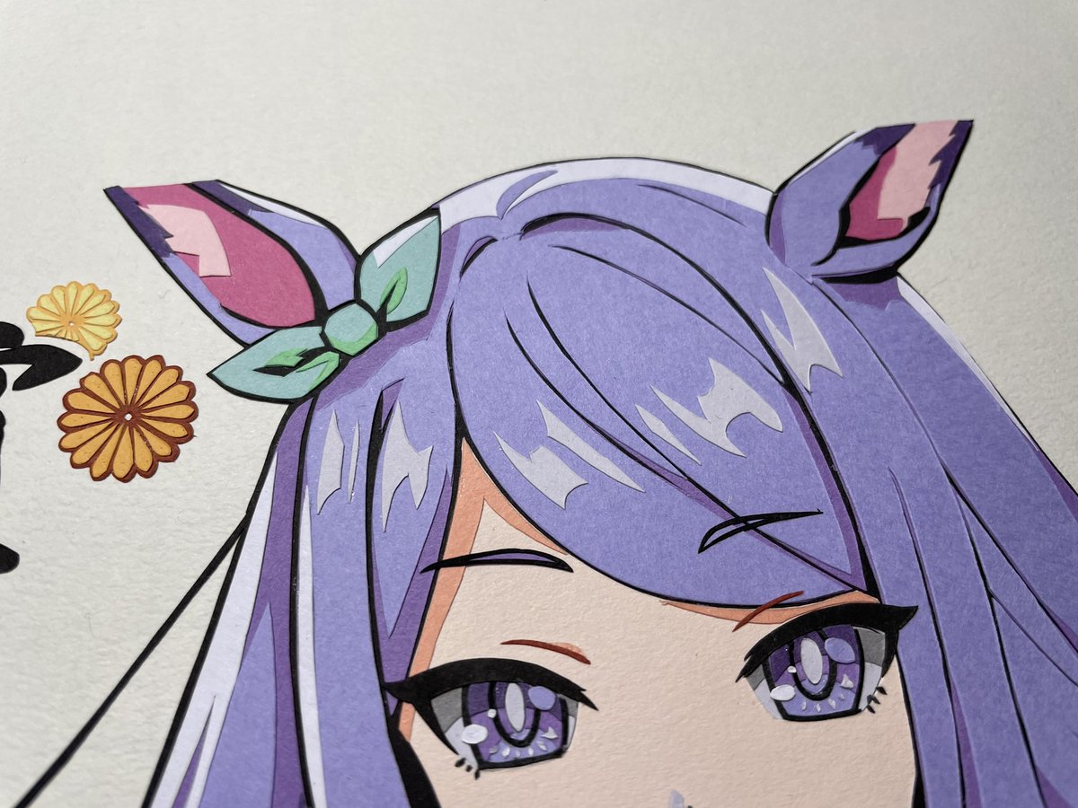 GWと少しの週末でゴール! モノクロイラストから色をつけてみました! メジロマックイーン、アニメもゲームも素敵なキャラで大好きです! 制作時間35〜40hほど #すりみの切り絵 #切り絵 #ウマ娘プリティダービー #ウマ娘 #メジロマックイーン