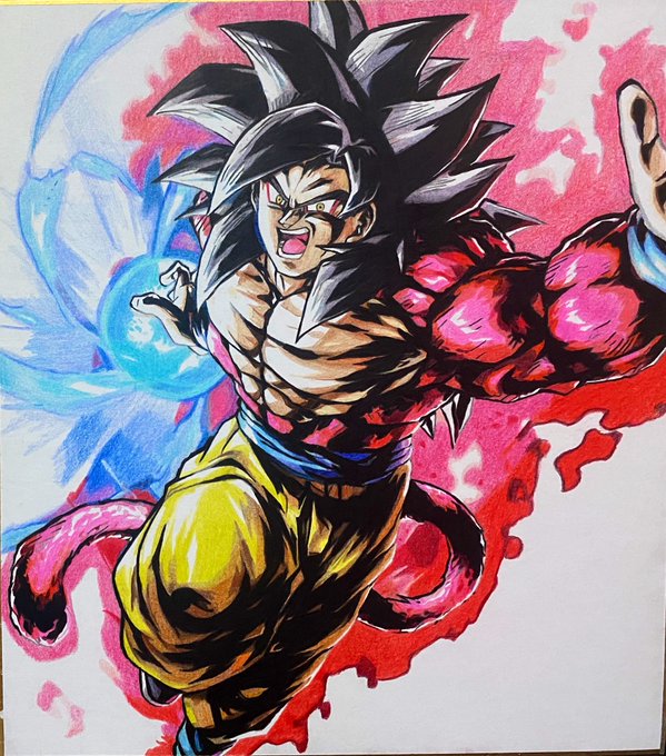 レジェンズより超サイヤ人4悟空描きました! #ドラゴンボール #ドラゴンボールレジェンズ #超サイヤ人4 #かめはめ波フェス #色鉛筆 #模写