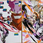レジェンズより超ゴジータ描きました! 前に描いたジャネンバと並べたらなかなかいい感じ! #ドラゴンボール #ドラゴンボールレジェンズ #ゴジータ #色鉛筆 #模写