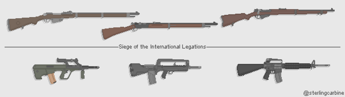 Rifles of the Siege of the International Legations - (elite marines, sailors & legation guard against boxer militia) and their modern counterparts (1990s) #pixelart #art #artist #ArtistOnTwitter #pixelartist #guns #ドット絵