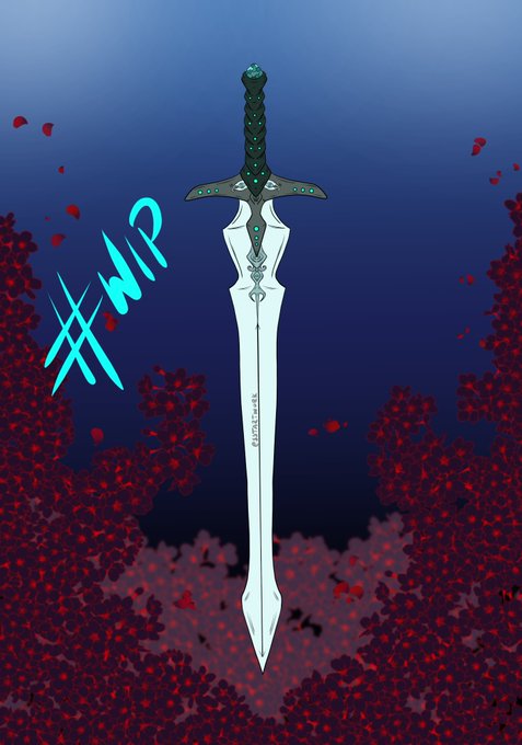 Working on a sword for an OC, so I thought i'd post the #wip seeing as it's #swordtember #swordtember2022 Haven't named her yet... Any ideas?