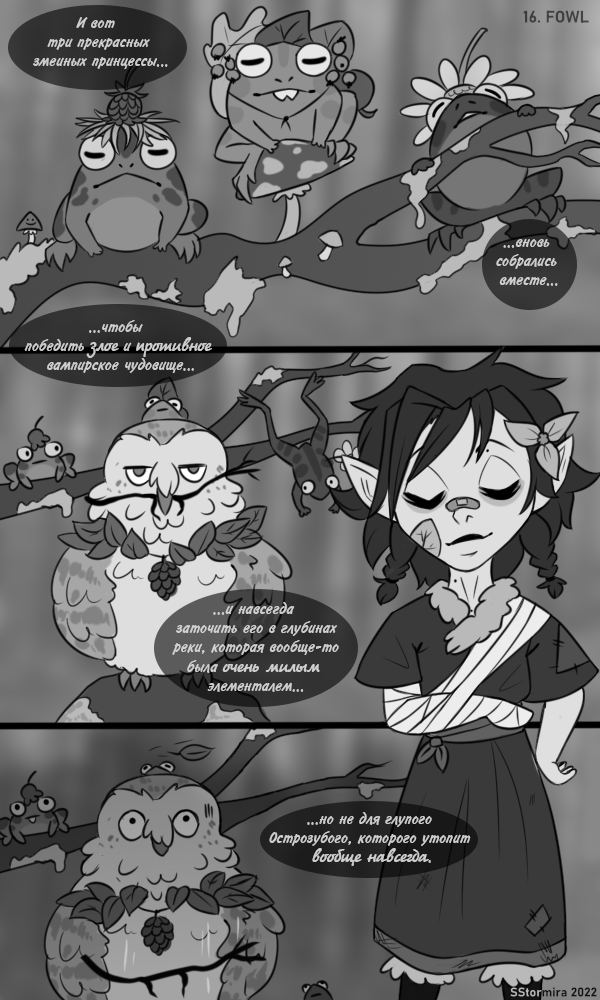 У детей в лесу не так много развлечений. Донна вот наряжала лягух в принцесс, а собственного фамильяра в местного сказочного монстра... #inktober#fowl#dnd