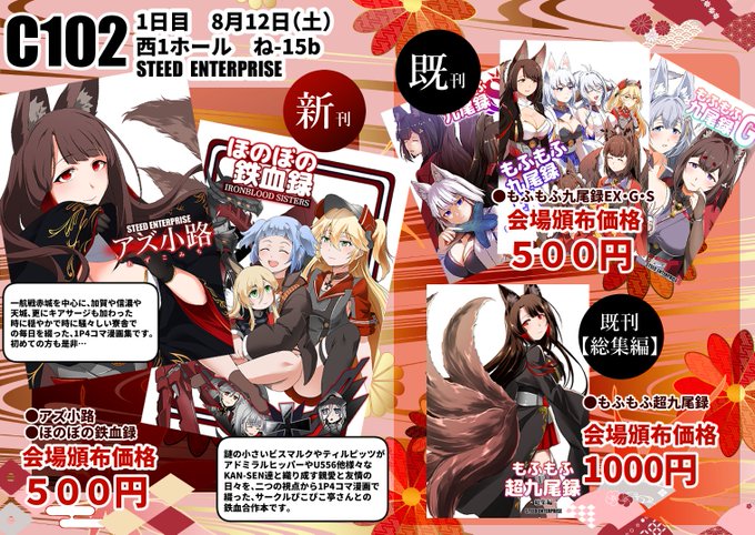 C102頒布物紹介。1日目(土曜日)参加、スペースは「西ね‐15b」になります。新刊二つの他、総集編や既刊も持って行きます。