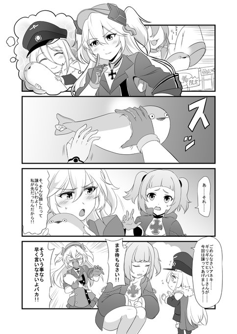 ちっさいビスマルクの為に、流行のぬいぐるみを買おうとするヒッパー。