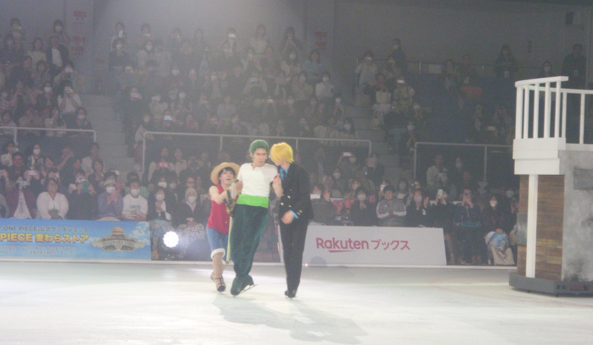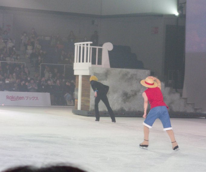 さいごさ、 一味が戻って行く中 ゾロだけ反対に行ってサンジが呼び戻してさぁ…… 喧嘩するんやけど ルフィが間に入って肩組むんよ…… 😭😭😭😭 #ワンピースオンアイス