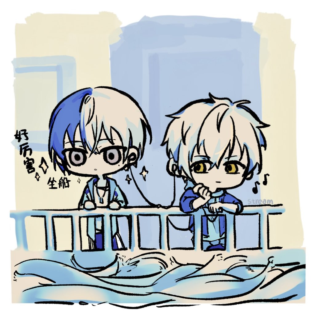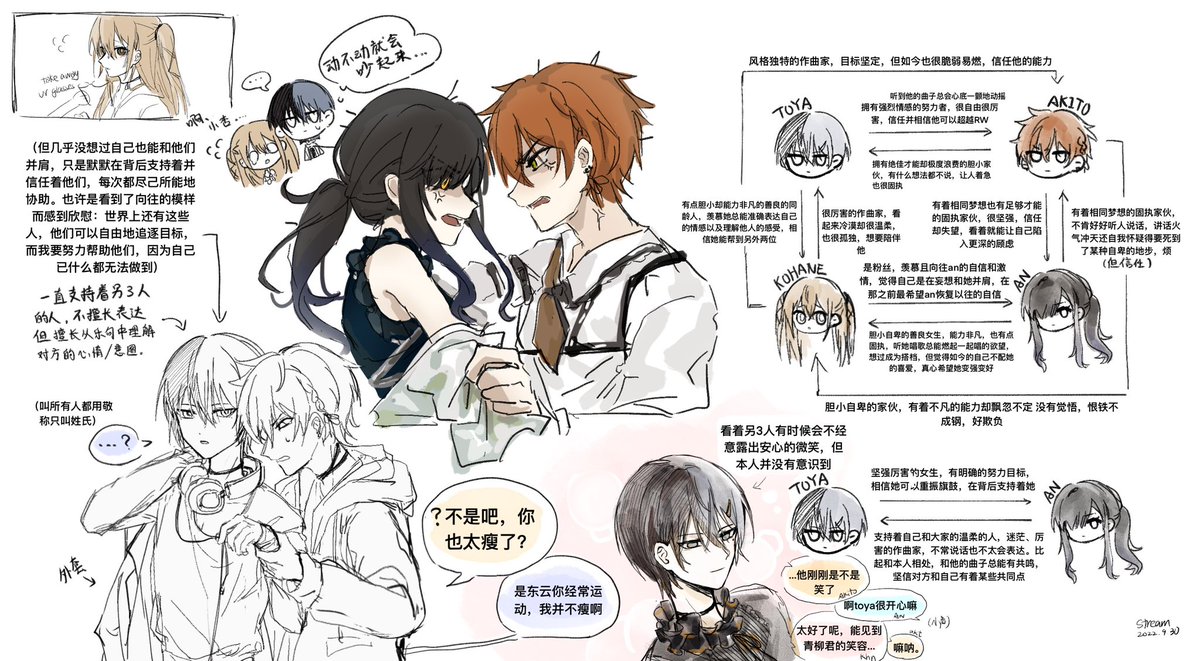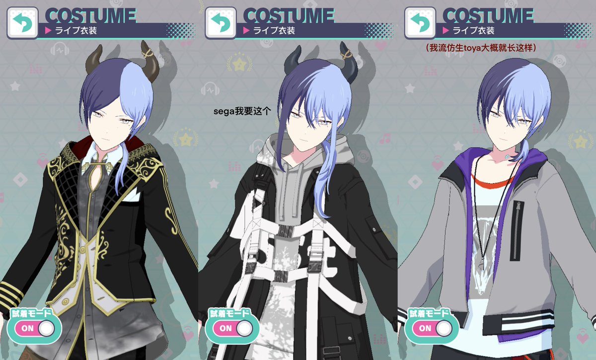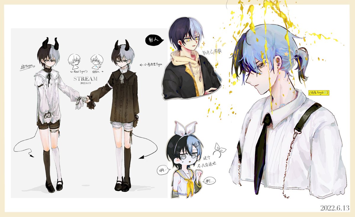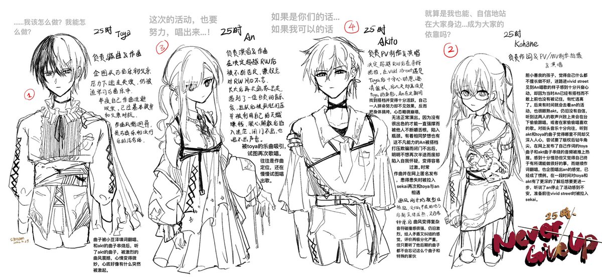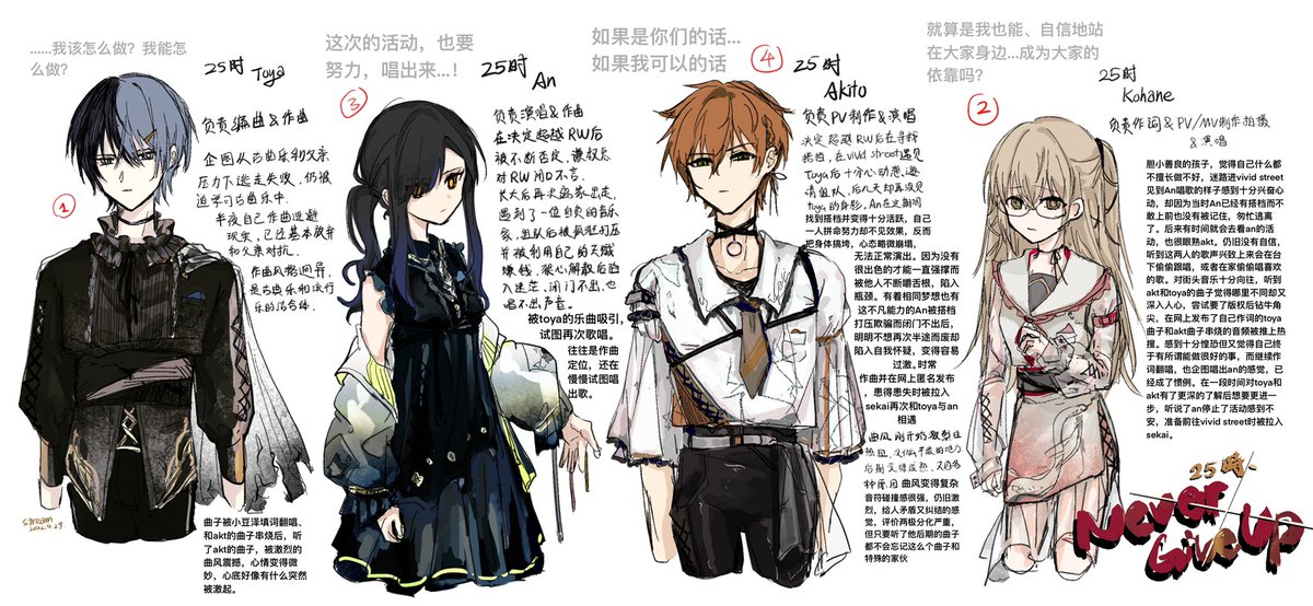 3 9 Touya with vivid bad squad 画的@akane313414 之前给冬设计的衣服,当然被我魔改过了 很明显这个人类不会排版(指我自己 #Prsk_FA #青柳冬弥 22/10/25 02:34