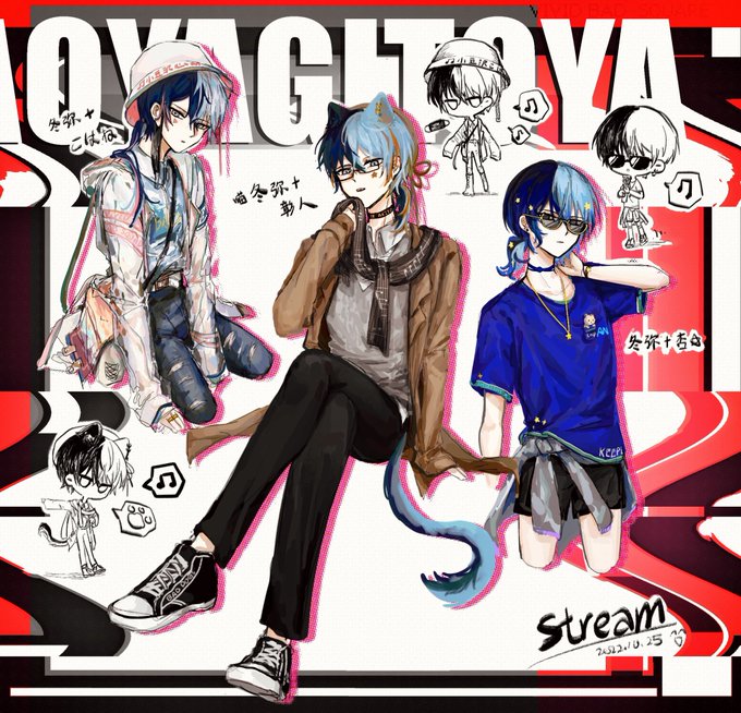 Touya with vivid bad squad 画的@akane313414 之前给冬设计的衣服,当然被我魔改过了 很明显这个人类不会排版(指我自己 #Prsk_FA #青柳冬弥